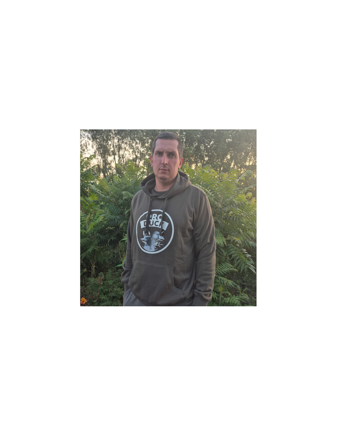 La nouvelle collection de hoodies Pro Duck. Un sweat avec capuche de couleur vert kaki avec un grand logo ventral sérigraphié Pro Duck. D'une épaisseur de 300gr au m2, ce sweat garantira douceur et confort.