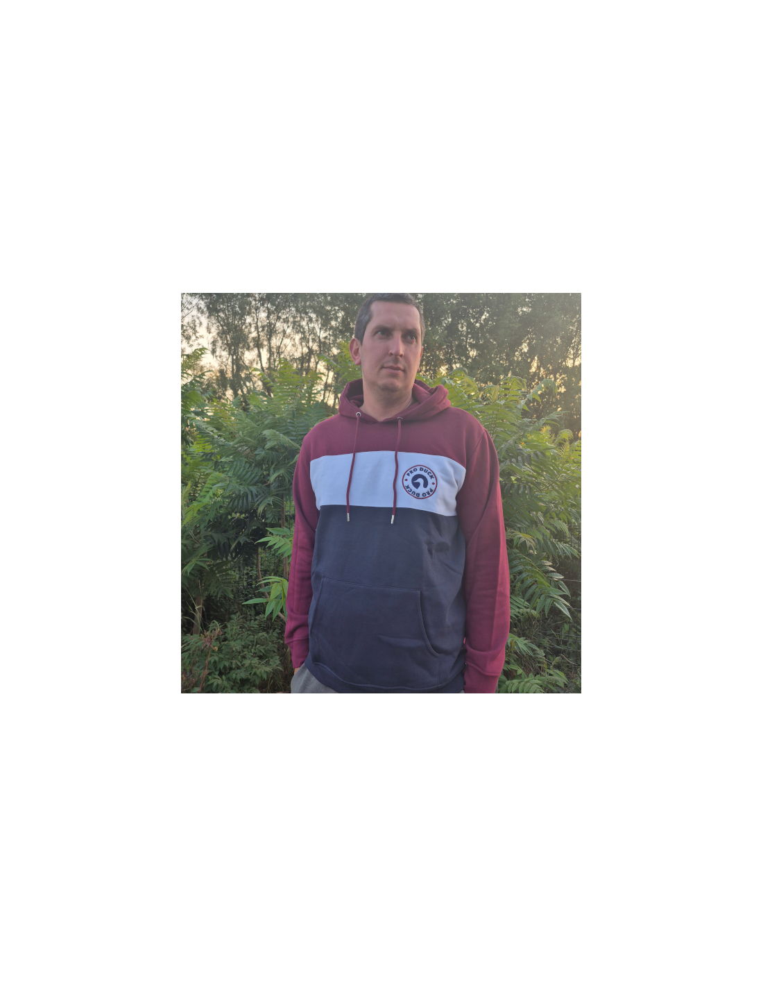 La nouvelle collection de hoodies Pro Duck. Un sweat avec capuche tricolore bordeaux-blanc-bleu avec une broderie coeur du même code couleur. D'une épaisseur de 280gr au m2, ce sweat garantira douceur et confort.