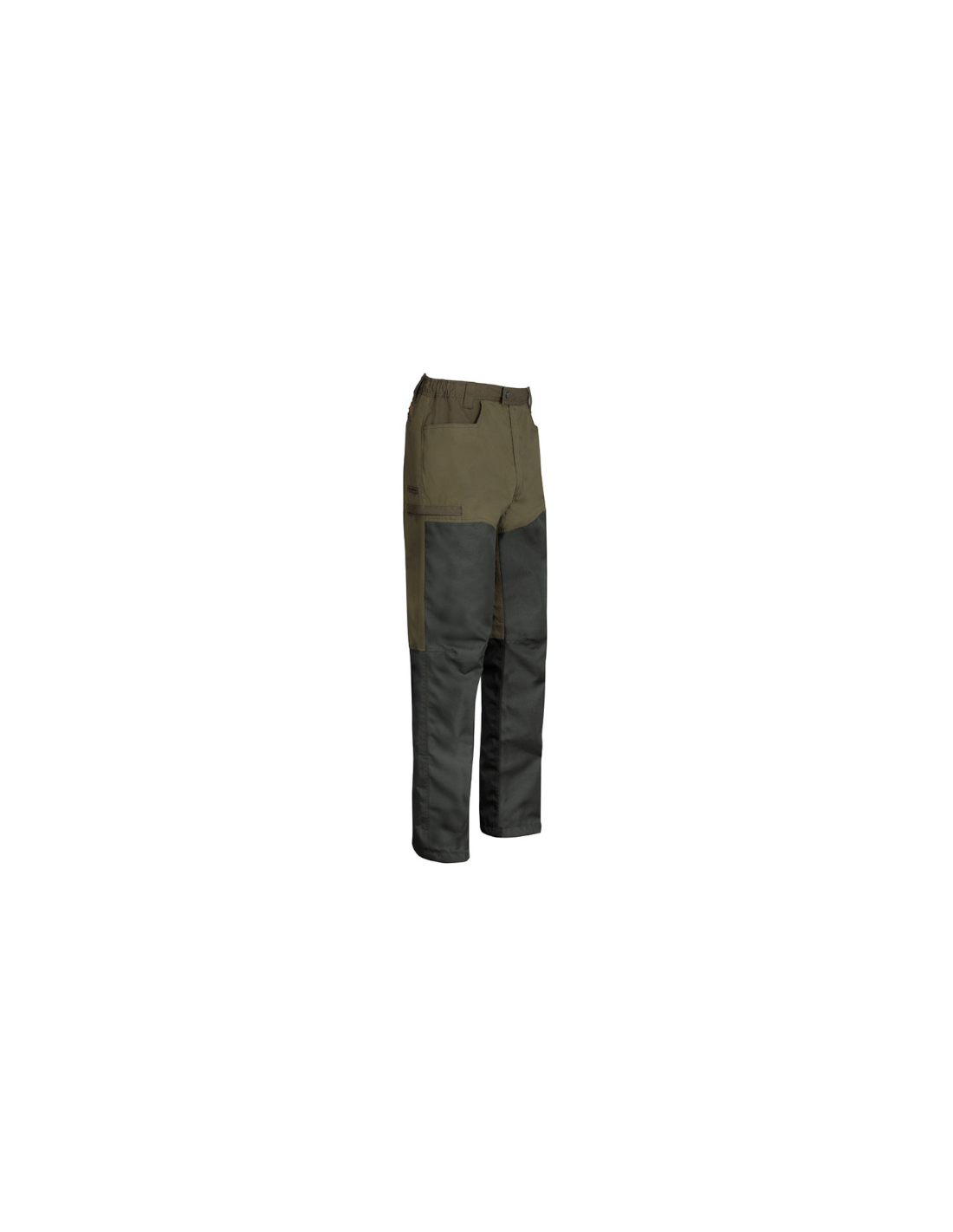 65% polyester, 35 % coton, membrane polyuréthane, imperméable et respirante, coutures étanches. Renforts 100% polyester imperméables et résistants. Doublure 65% polyester, 35% coton. 6 poches dont 1 poche couteau. Ceinture antiglisse élastiquée, genoux préformés.