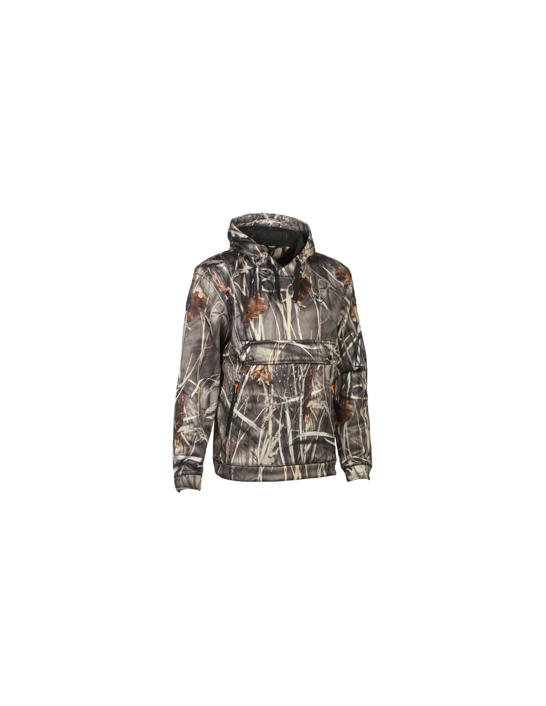 100 % polyester, contrecollé micro polaire 100% polyester. Poche ventrale zippée recouverte par un rabat, 2 poches zippées, capuche avec cordon de serrage. (GC B&B normé CE
